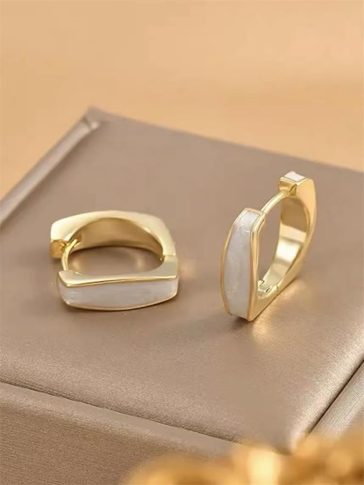 DIAMANTIO 18K Gold Plated, Gold Huggie Hoop Earrings with Pearl Inlay for Women – Minimalist Rectangular Design – Elegant Everyday Jewelry for Office, Casual & Formal Wear