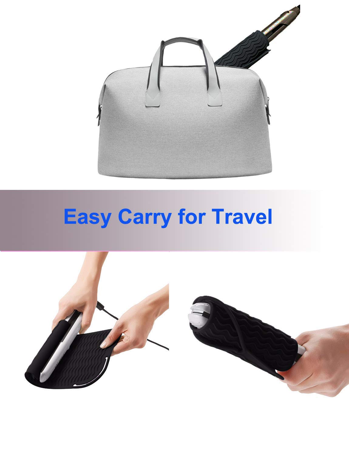 Use this as a heat mat under your curling iron when at home and once done with the hot iron. Help keep sink and counter tidy. When traveling you never worry if your curling iron or flat iron will damage the countertops as they sit securely on top of the pouch whenever they’ve been in use.