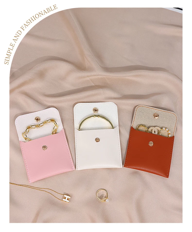 Mini PU Leather Envelope Shape Pouch for Travel Reusable Recyclable Jewelry Bag for Ring Bracelet Necklace Earrings Packaging