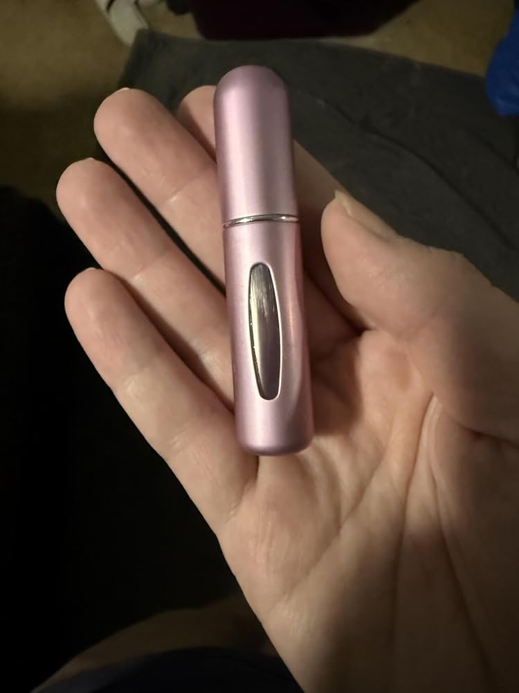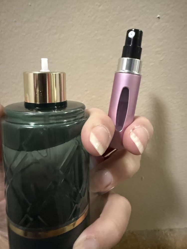 Works well with most of my perfumes. One of my perfume bottles has the wrong size head, but it works with all the others. You just take off the top of your perfume exposing the little tube, and then shove the travel bottle down onto it a few times to fill it up. It’s got a little hole in the bottom for filling.